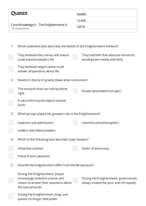 The worksheet can help students understand the Enlightenment and Revolution by providing them with an understanding of the ideas and ideals that were important during this period. The worksheet can also help students gain an understanding of the beliefs and values of the Enlightenment and Revolution. By understanding the ideas and ideals of the Enlightenment and Revolution, students can gain an appreciation for the importance of these ideas and ideals in shaping the world today.